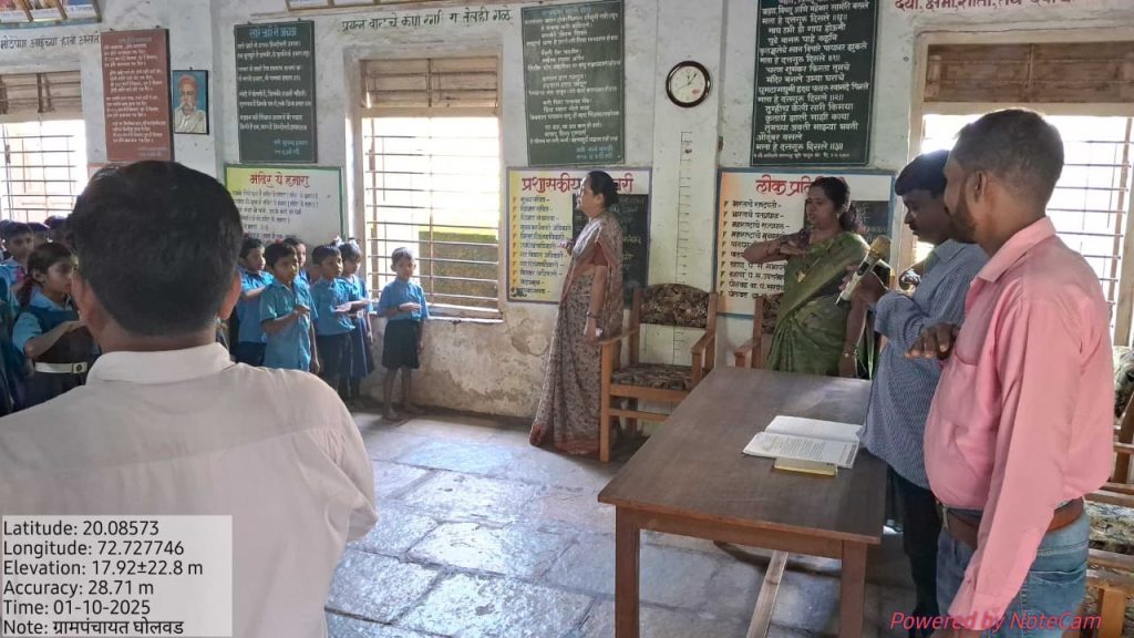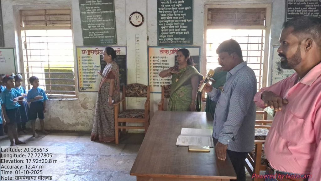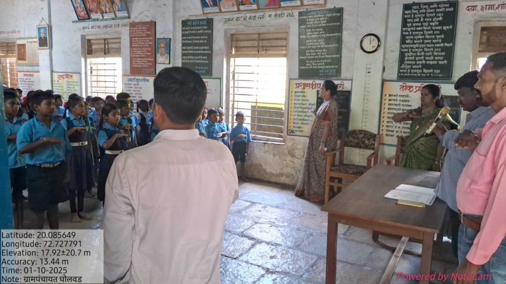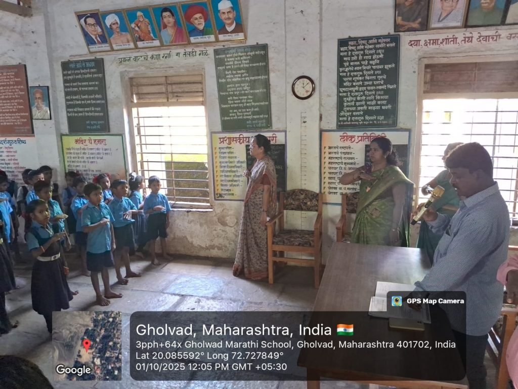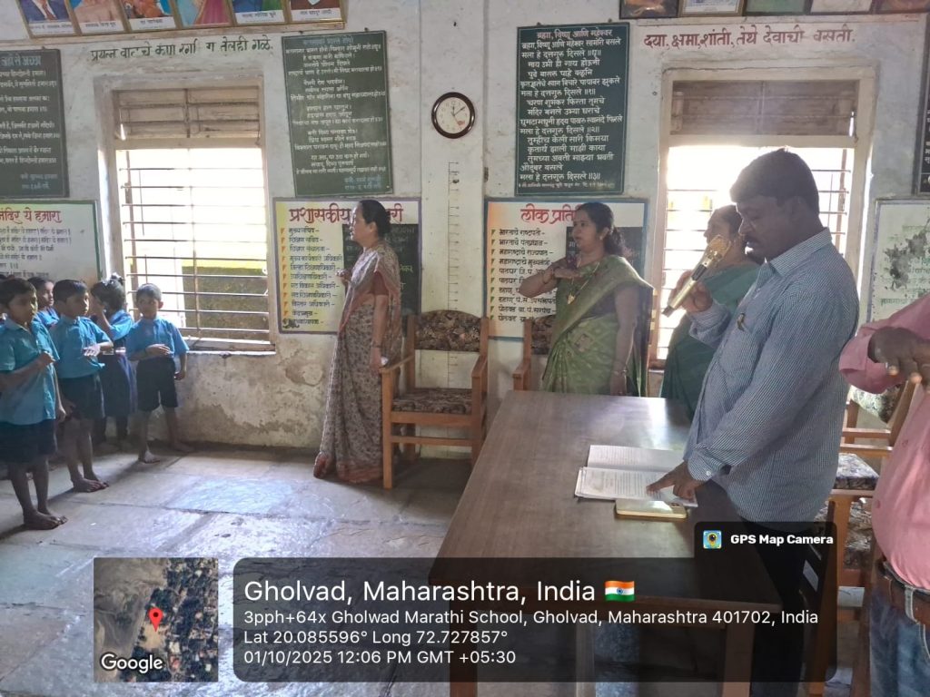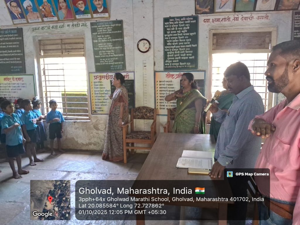 जि ष मराठी शाळा घोलवड येथील मुलाना स्वच्छताअभियान कार्यक्रम मुख्यमंत्री समृद्ध पंचायतराज अभियान शपथ व महत्त्व समजून सांगितले.